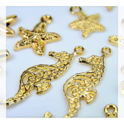 タツノオトシゴ2種、海亀、ヒトデ4種、海亀2種のチャームです。
