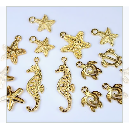タツノオトシゴ2種、海亀、ヒトデ4種、海亀2種のチャームです。