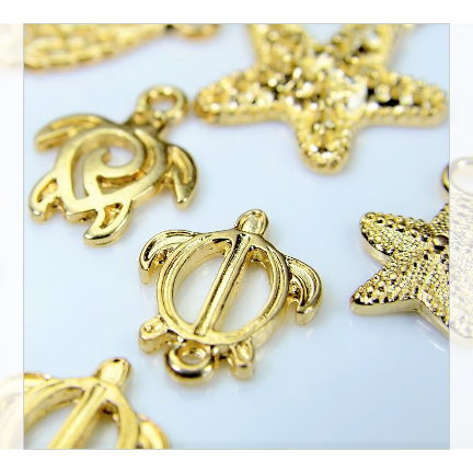 タツノオトシゴ2種、海亀、ヒトデ4種、海亀2種のチャームです。